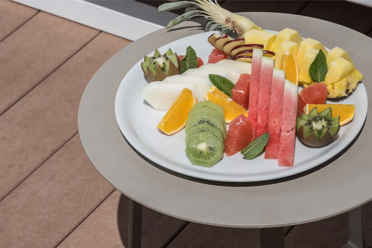 Sombras de dos copas brindando sobre una plataforma de madera.