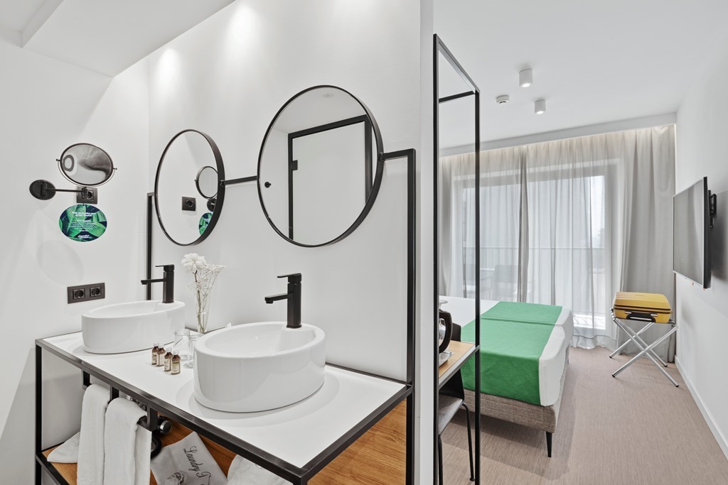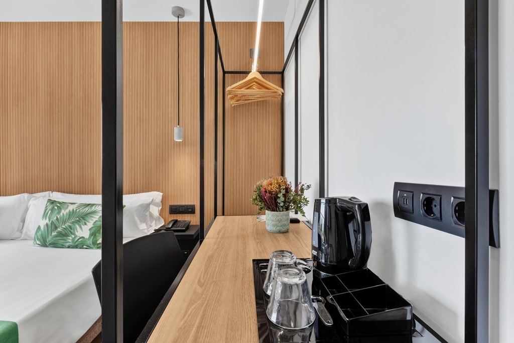Las habitaciones vista piscina están situadas en el edificio principal, con 6 de ellas adaptadas para minusválidos en el edificio Suite (las habitaciones para minusválidos se deben confirmar por email). Las habitaciones vista piscina ofrecen balcón, os camas individuales, baño completo con ducha y todas las comodidades necesarias.
