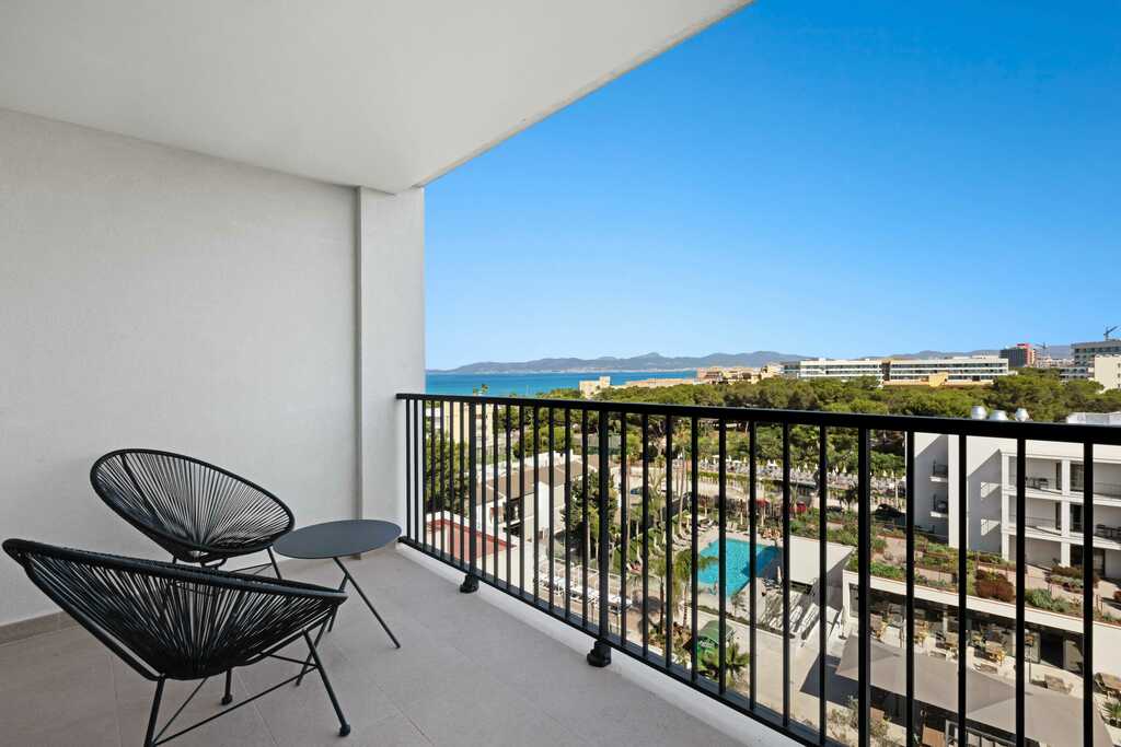 Las Junior Suites están situadas en el edificio Suites y ofrecen balcón, dos camas individuales, un sofá cama, baño completo con ducha y todas las comodidades necesarias.