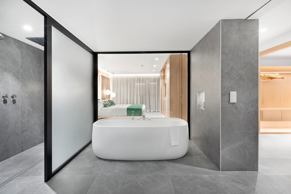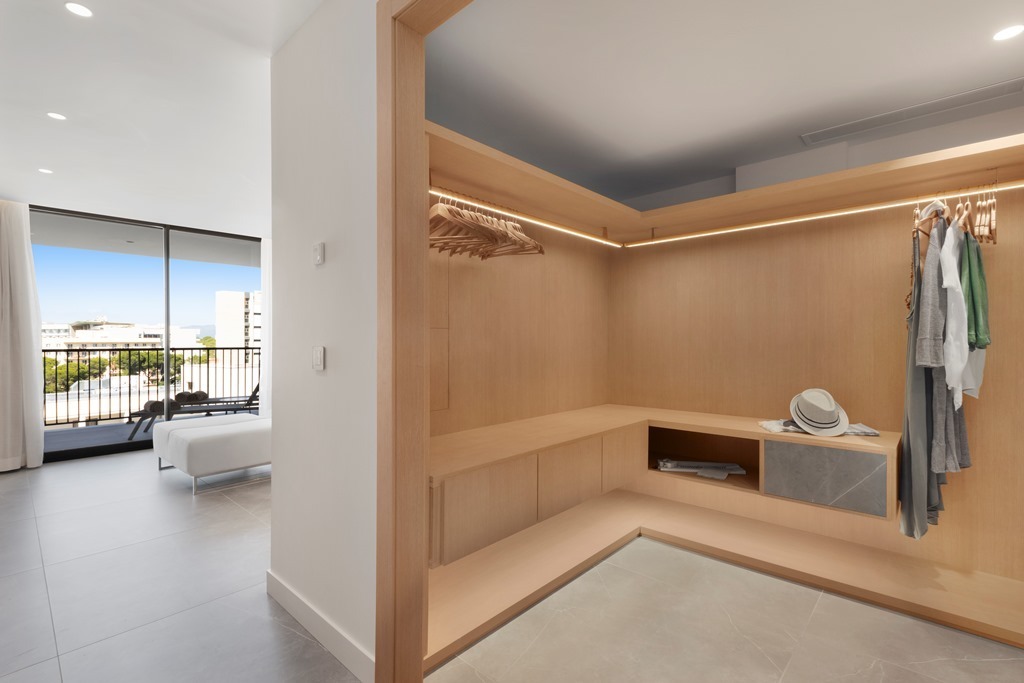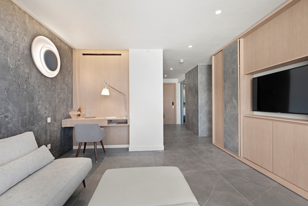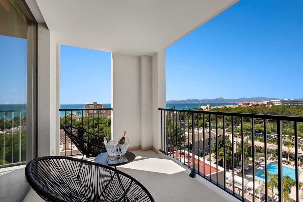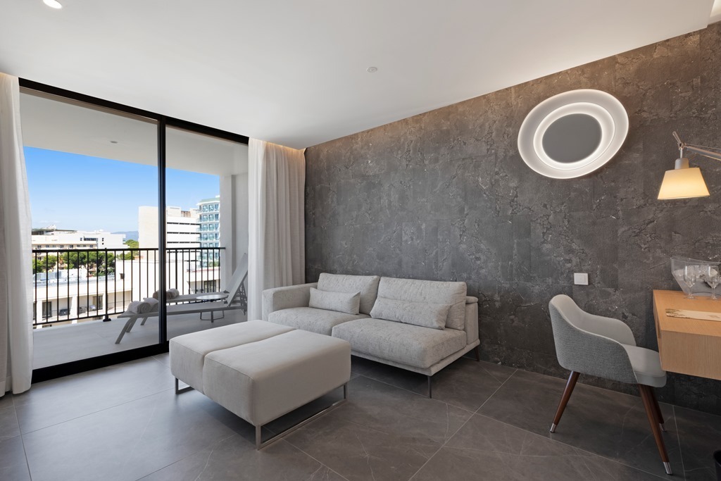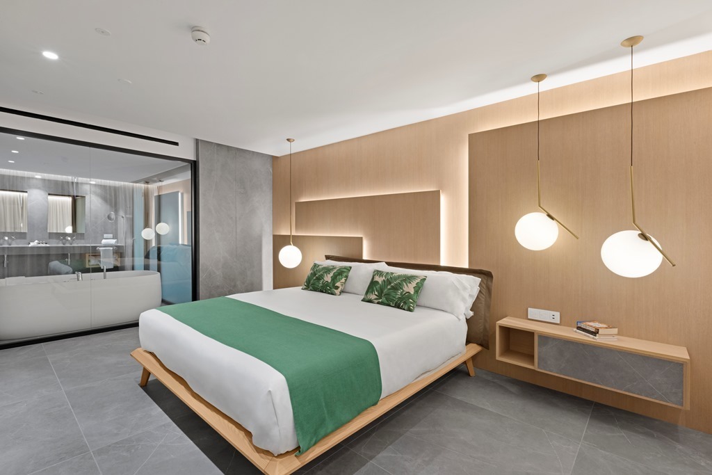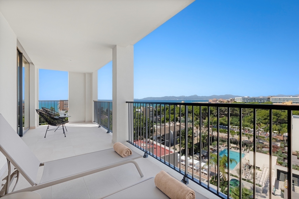 La Suite está situada en el último piso del edificio de las Junior Suites con vistas al mar. La habitación está equipada con un baño, un aseo, vestidor, salón, habitación con cama de matrimonio, terraza con hamacas y todas las comodidades necesarias.